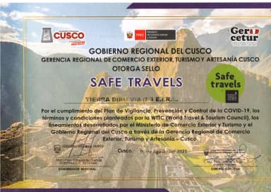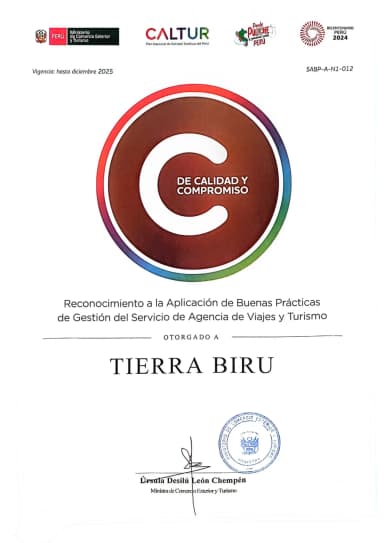 At Tierra Biru, we are committed to quality, safety, and sustainability in each of our services. For this reason, we have national and international recognition seals that endorse our excellence and commitment to our travelers. These distinctions guarantee that our experiences meet the highest standards in the tourism sector.