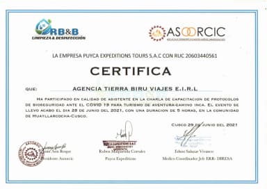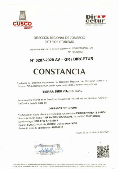Our commitment to reliability and improvement is reflected in the official certificates that support our operations. Each one is proof of rigorous compliance with legal, safety, and quality regulations in the provision of our tourism services. These documents endorse us as a reliable and responsible agency for our clients and partners.